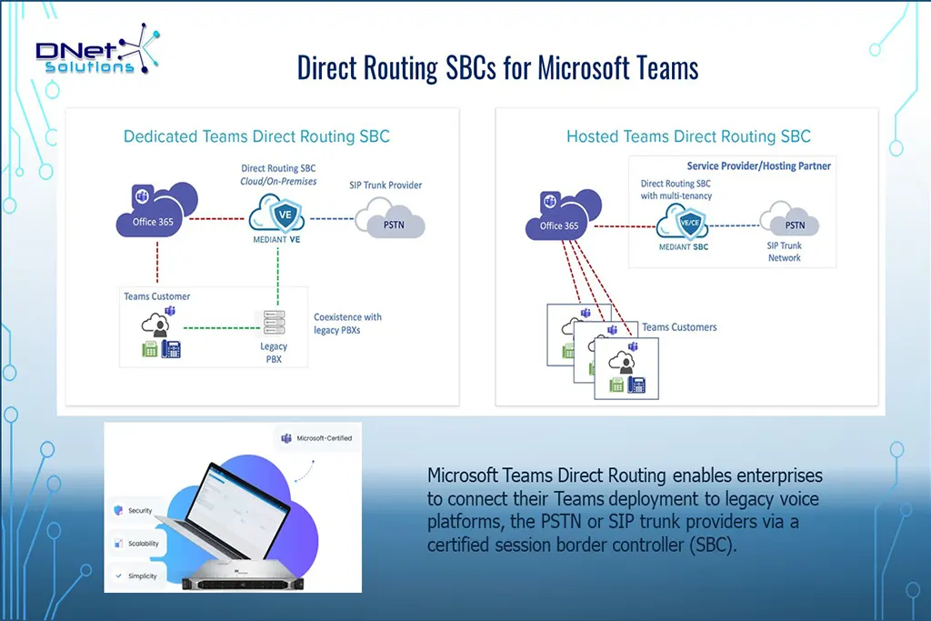 Connect Microsoft Teams to the Public Switched Telephone Network (PSTN) through our Direct Routing solutions. This allows your Teams users to make and receive external calls using a secure and reliable Session Border Controller (SBC).